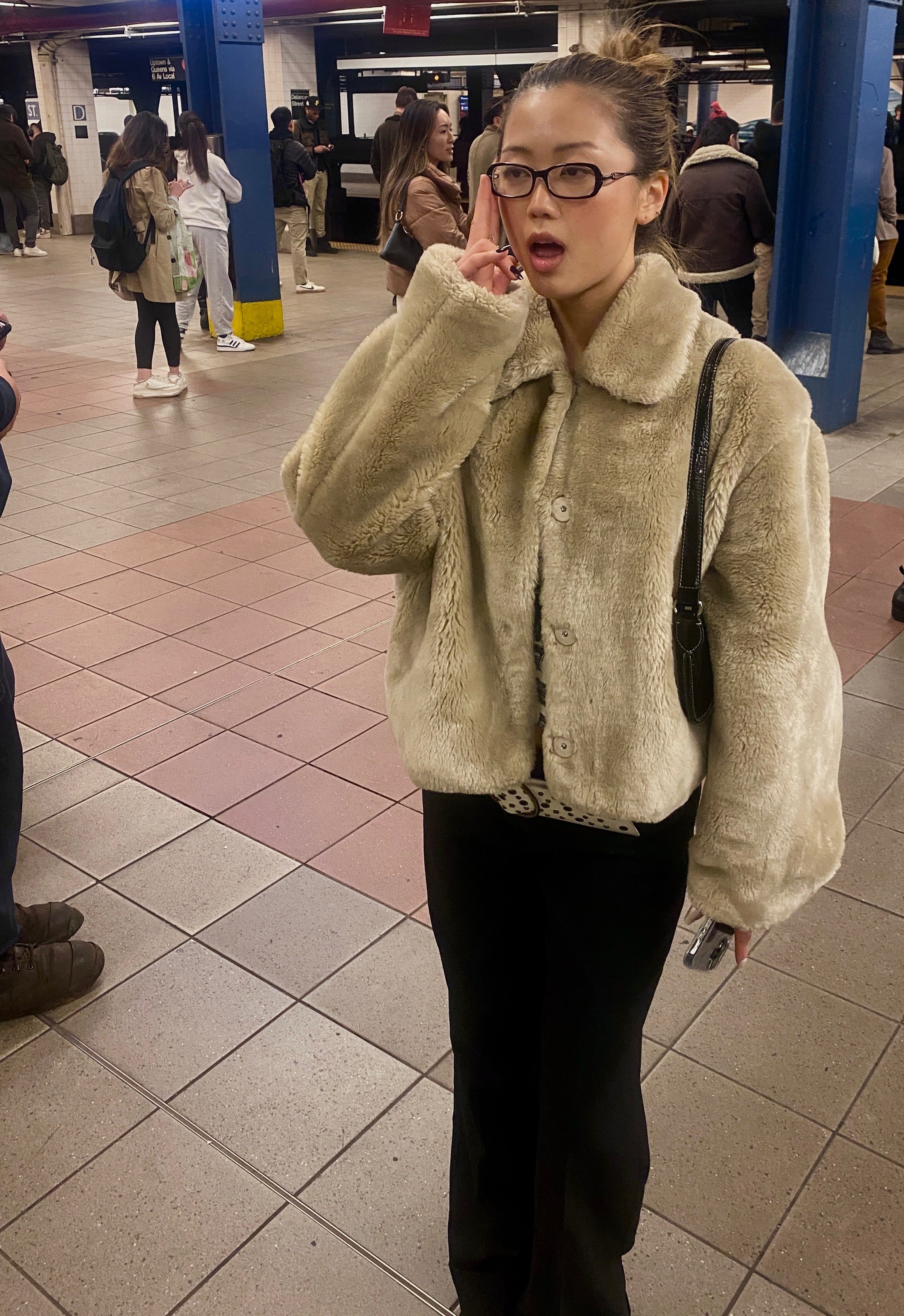 My second interview happened en route to the (much coveted) third location of the night with a new friend, Angela Kwon (@angelakwonhb). Fashion icon, art director, and advertising student, I asked her about her approach to fashion whilst holding out my iPhone in front of our faces as we speed-walked to the club down Delancy Street.